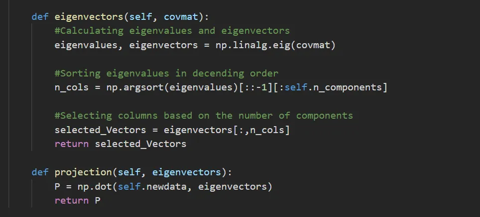 Next, we will declare a class called PCA, which will have all the steps we learned previously in this blog.